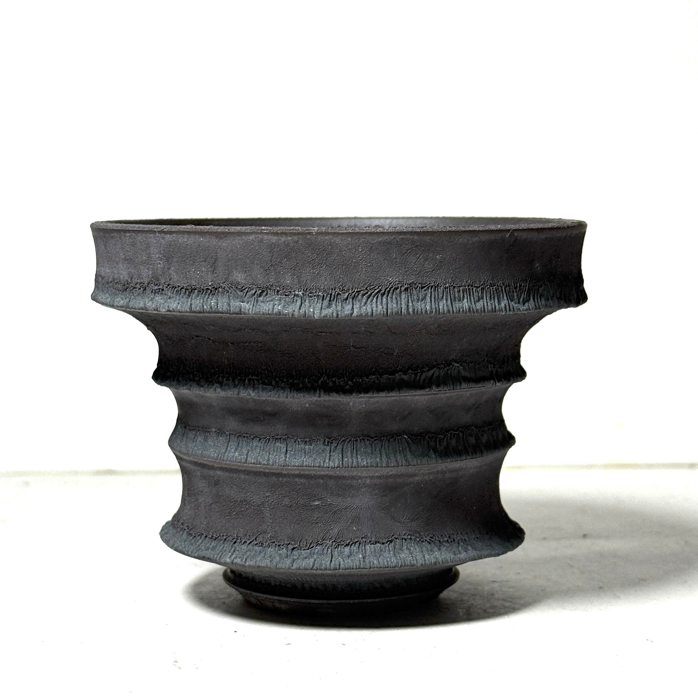 この植木鉢は、自然の美しさと現代的なデザインを融合させたものです。職人が一つ一つ手作業で丁寧に作り上げており、それぞれが唯一無二の風合いを持っています。表面の黒いマットな質感は、モダンでシックな印象を与え、どんなインテリアにも自然に溶け込むデザインとなっています。